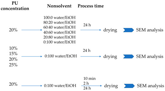 4.2. Preparation of Polyurethane Scaffolds—Selection of Process Parameters