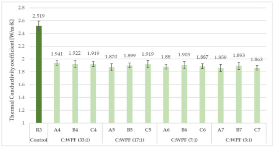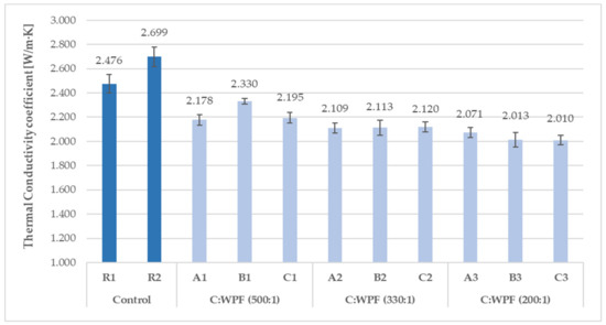 - The C/WPF ratio had a significant effect on all of the studied properties of fresh mixtures and hardened fiber-cement mortars. The consistency values of the fiber-cement mortars containing fibers with different cellulose contents in amounts less 2 wt.% were related to the plaster mortars. The optimum C/WPF ratio for achieving values of a mean spill diameter corresponding to the standard plastic mortars (140–200 mm) within the scope of the study is ranged up to 17:1, representing a fiber content ≤2 wt.% in cement mortar with fiber sample C. The higher fiber content in cement mortar and the higher porosity meant that the mortar became lighter, leading to lower values for the bulk density and thermal conductivity after 28 days of hardening. The study of the water absorption behavior of the fiber-cement mortars confirmed that incorporating a higher portion of WPF into mortars led to significantly higher values of absorbency and a capillarity absorption coefficient. This fact is related to the formation of a larger number of pores and their sizes because the low C/WPF ratio in cement mortars caused a decrease in the compressive and flexural strength. This is also a consequence of the weaker adhesion of the fibers and cement particles at the matrix–fiber interface because of the hydrophility of the cellulose fibers.