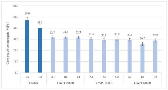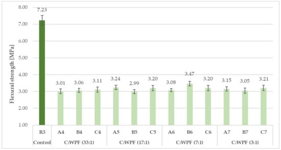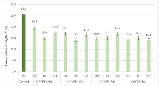 3.1. Effect of C/WPF Ratio on Properties of Fresh Mixtures and Hardened Fiber-Cement Mortars