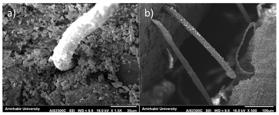 SEM images of: (a) CO sample; and (b) MK30 sample.