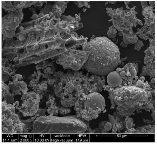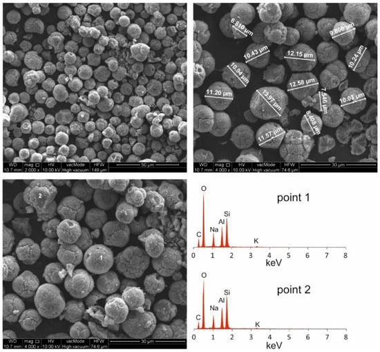 Morphological analyses of high-carbon fly ash are presented in Figure 2. Figure 3 shows the morphology of the Na-P1(C), whereas Figure 4, that of Na-P1.