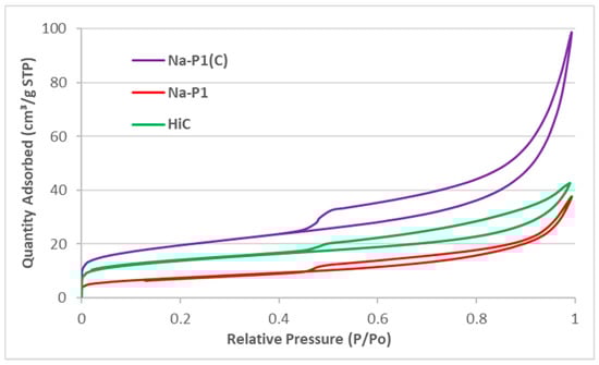 These results indicated that all adsorbents had a poorly developed surface. They contained mesopores of average diameter in the range 5.66–6.93 nm. Figure 7 shows the nitrogen adsorption–desorption isotherms at liquid nitrogen temperature of the studied materials. It can be observed that the Na-P1(C) material is characterized by the highest nitrogen adsorption, which is confirmed by the textural parameters of these materials presented in Table 3.