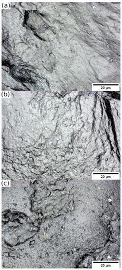 Surface images of (a) Ottawa sand, (b) Q-Rok, and (c) Siligran from high resolution confocal laser microscope.