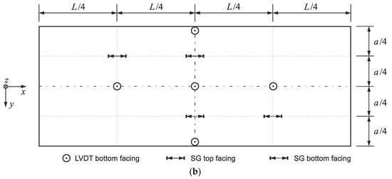 Schematic diagram of full-scale laboratory tests: (a) load and support, (b) positions of measuring devices.