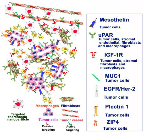 Biomarkers used for their potential role in nanomediated therapy. Abbreviations: uPAR—Urokinase Plasminogen Activator, ZIP4—zinc transporter 4. Reprinted with permission from [105].