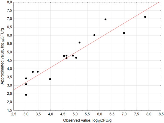 The data presented in Figure 3 indicated the linear relationship between the observed and approximated values of the number of E. coli.