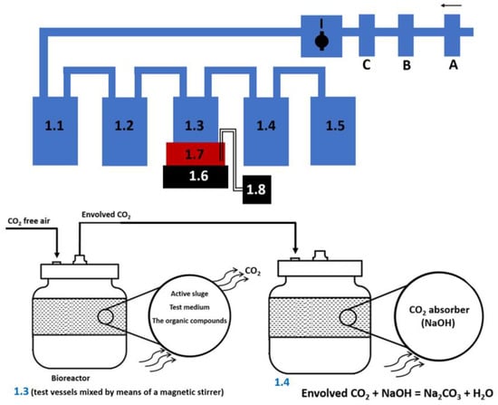 Biodegradation in the mineral medium by CO2 production—General method for determining aerobic biodegradation potential [29,36,37,38,39].