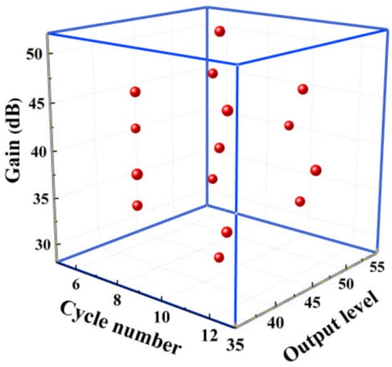 In this study, three main parameter settings that cycle numbers ranging from 5 to 14, the output level ranging from 30 to 55 and the gain ranging from 28 to 50 are considered. The nonlinear Lamb wave detection system is used to measure the sample response under the same conditions three times; then, the average value is taken as A1 and A2. To overcome the effect of random noise generation, the relative error of the repeated measurement is set below 1.5%.