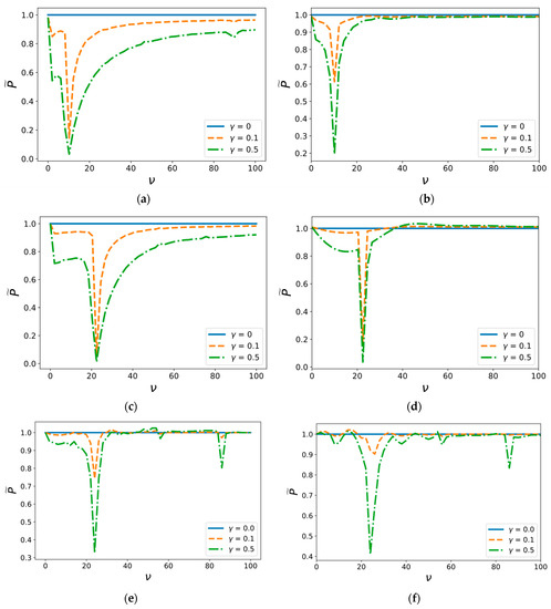 These graphs show the existence of certain frequencies of the background field as in the membrane (Figure 5e,f) and as the beam approximation (Figure 5a–d), as has been shown above for the constant force loading. The same phenomenon of a significant decrease in the threshold amplitude is also observed, and the same influence of the external field for even weak intensity on critical load characteristics can be identified. It should be noted that only the hinged beam case has specific peculiarities, as demonstrated in Figure 5a,b. The influence of background field on the threshold amplitude of short pulse load does not completely depend on the value of (Figure 5a), whereas vibrations with relative magnitude provide higher reduction in the critical amplitude of long pulses than those with (Figure 5b). This implies that the relative energy consumption for short pulses is also less than that for long pulses since there is almost no difference in effect of weak and moderate background fields. A similar tendency emerges in the membrane approximation case. Figure 5e demonstrates that the effect of weak background field is more obvious for short load pulses than for long pulses (Figure 5f).