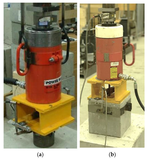 To derive the tensile force, it was necessary to use a hydraulic loading cylinder with an internal hole, with a load range of 200 kN; Figure 7.