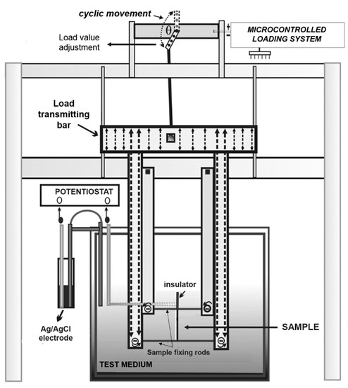 The principal design of the experimental setup for corrosion fatigue testing under cyclic loading [33,34,35].