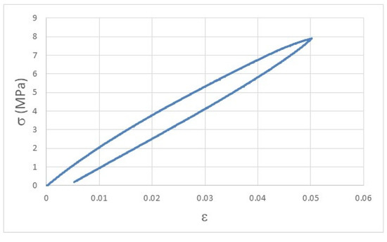 The viscoelastic behavior of polymeric materials can be easily understood by the curve displayed in Figure 3, where, after the removal of the load that imposed an elastic deformation, the Ph printed sample did not fully recover the initial dimensions (ε = 0) and presents a permanent deformation of 0.005 after just one cyclic deformation.