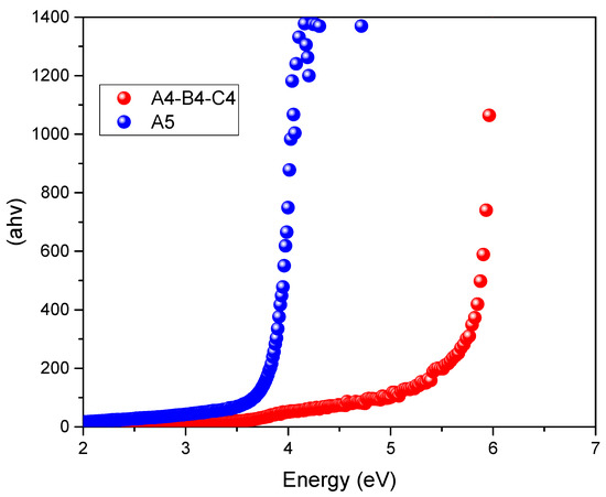 Tauc plots relative to the systems A4, B4, C4, ChCl/EG (1:1) and A5, ChCl/EtOH (1:1).