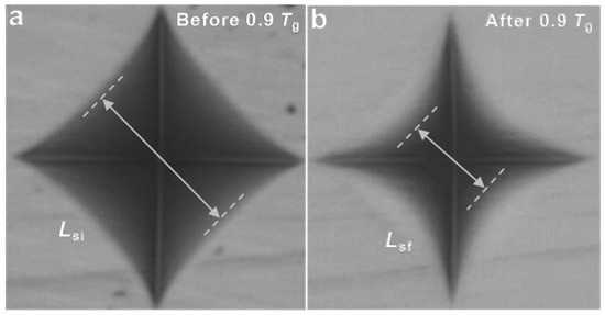 3.5. The Recovery of the Indentation Side Length (LSR)