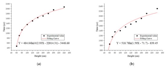 According to the changing trend of flame duration with drop height, we chose the Equation (4) to fit the relationship between the flame duration and the drop height.