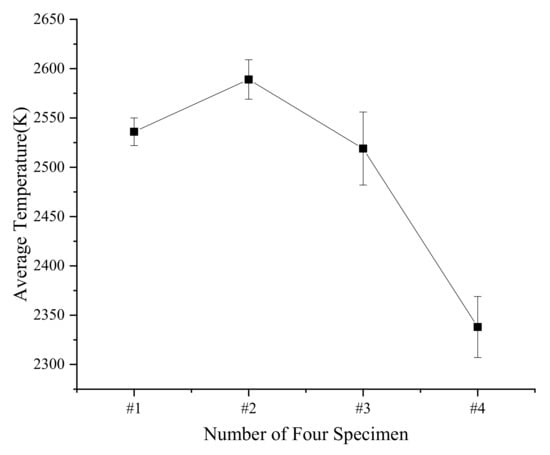 The average and standard deviation of reaction flame temperature of the four kinds of specimens.