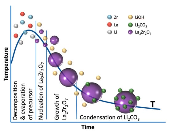 - Djenadic, R.; Botros, M.; Benel, C.; Clemens, O.; Indris, S.; Choudhary, A.; Bergfeldt, T.; Hahn, H. Nebulized spray pyrolysis of Al-doped Li7La3Zr2O12 solid electrolyte for battery applications. Solid State Ionics 2014, 263, 49–56. [Google Scholar] [CrossRef]