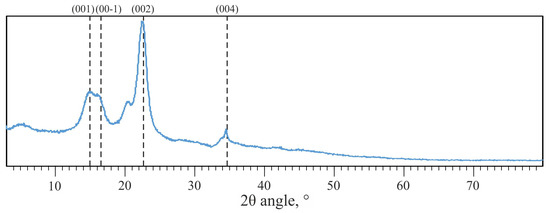 The crystalline structure of a cellulose sample was investigated at room temperature by powder X-ray diffraction (PXRD) using a PANalytical Empyrean diffractometer (Almelo, the Netherlands) equipped with a Ni-filtered Cu Kα radiation source operating at 40 kV and 40 mA in the Bragg–Brentano geometry. The sample was scanned in the 2θ range 3–80° with a step size of 0.033° and a time per step of 60 s.