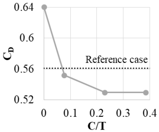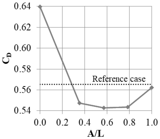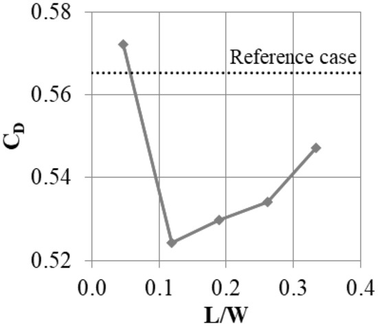 Another way to limit the separation is to increase the angle between the horizontal (inlet) and vertical (outlet) part of the slot. The base angle in the slot is 90°, and this was changed to 115 and 140°. With an increase in the angle, the leakage through the gap decreases by 2.5 and 3.5%, respectively, compared to the 90° case (Figure 25). This means that for a slot angle of 140°, the reduction with respect to the reference case without the AC is 50% greater than in the 90° case.