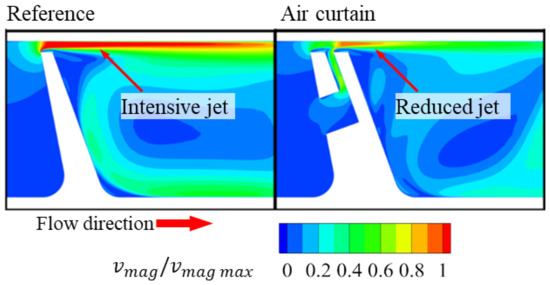 The effectiveness of the air curtain was on the basis of an experiment and numerical simulations. In the studied cases, the modification resulted in a 4–22% reduction in leakage, depending on the gap height and the pressure ratio [18,19].