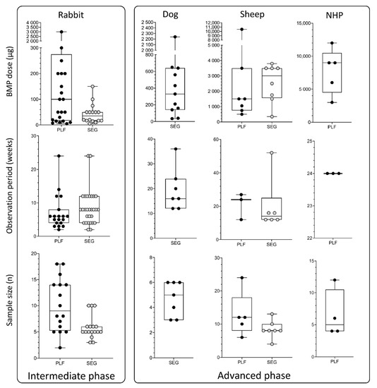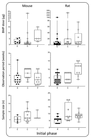 | Author (Year) | Model | Carrier | BMP Dose (µg) | Time (Weeks) | Sample Size (n) |