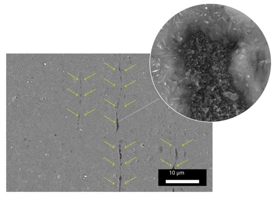 The MMCs with an aluminium matrix reinforced with tungsten carbide (WC) and titanium carbide (TiC) particles are described in [11]. In this work, the authors used submicron-sized WC and TiC particles to reinforce Al1050 in a two-step method: mixing additives with fluxing salt followed by introducing this mix into the molten aluminium alloy. Melting was accompanied by intensive stirring to avoid agglomeration of carbides and to promote homogeneous dispersion. Molten aluminium with induced carbides was poured into moulds [11]. The authors declared that the corrosion behaviour of the obtained MMCs was determined by the corrosion resistance of the selected aluminium alloy. Moreover, carbides and aluminides in the aluminium matrix often prevented intergranular corrosion [11]. Another paper reported Al-based MMCs with SiC reinforcement designed by strip casting [12]. The MMC system that had a greater hardness had better corrosion resistance, but still lower than that of the initial aluminium alloy [12]. Shimizu et al. investigated the corrosion resistance of Al-based metal matrix composites prepared with various additives: carbon fibres, alumina fibres, and silicon carbide whiskers [9]. The authors showed that the corrosion potential for MMCs produced with carbon fibres, alumina fibres, and SiC whiskers was rather the same as for pure Al 6061. However, it was concluded that the presence of carbon additives might be more subjected to pitting [9]. Zakaria showed that Al/SiC MMCs could be fabricated by powder metallurgy methods [13]. The author tested the impact of the fraction size of SiC additives on the corrosion behaviour of the MMCs. It was found that an increase in the amount of SiC in MMC, and the reduction of its fraction size, resulted in corrosion resistance improvement [13].