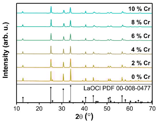 XRD patterns of LaOCl samples with different concentrations of Cr.