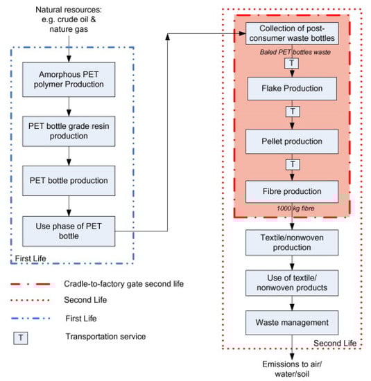 - Shen, L.; Worrell, E.; Patel, M.K. Open-loop recycling: A LCA case study of PET bottle-to-fibre recycling. Resour. Conserv. Recycl. 2010, 55, 34–52. [Google Scholar] [CrossRef]