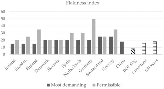 International comparison requirements for aggregates in road construction: Flakiness index.