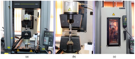 Determination of the properties of materials: (a) test frame; (b) pneumatic jaws; (c) environmental chamber.