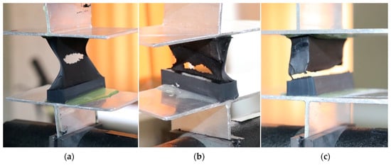 The failure mechanism is temperature dependant. At −20 °C PIB sealant is highly rigid and resistant to load, producing good bond quality. At 23 °C the material becomes more ductile and three types of damage were distinguished. Firstly, viscoplastic flow and cohesive failure of PIB occurred, as shown in Figure 11a. Secondly, adhesive failure occured, as shown in Figure 11c. In some cases, viscoplastic damage of butyl was only partial and accompanied by partial separation due to bond failure, as shown in Figure 11b.