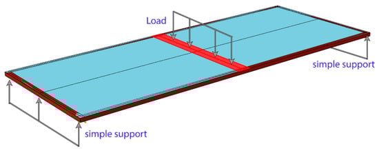 Boundary conditions and loading scheme during the rectangular panel validation test.