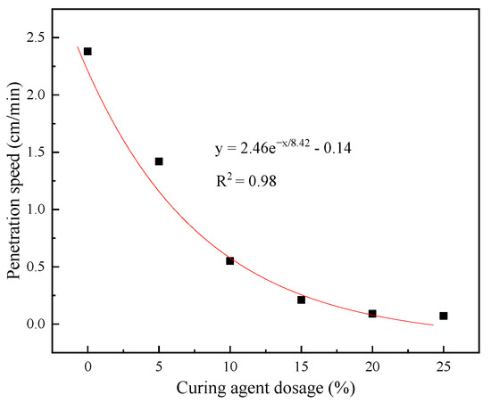 Figure 7 presents the penetration test results of the epoxy-emulsified asphalt with different curing agent contents.