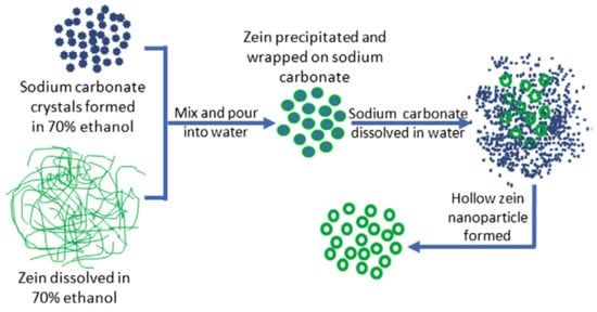 Process of obtaining the hollow zein nanoparticles (nanocapsules). Reprinted with permission from ref. [72]. Copyright 2013 Elsevier.