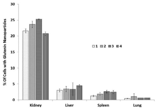 Biodistribution of wheat glutenin nanoparticles in different organs in mice. Reprinted with permission from ref. [98]. Copyright 2015 John Wiley and Sons.