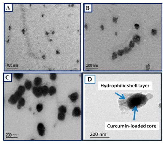 Composite nanoparticles were developed from soy proteins and cellulose nanocrystals (CNCs) as potential delivery agents for curcumin. Soy proteins were dispersed in water, the pH was adjusted, and CNCs were dispersed in water at a concentration of 0.25 mg/mL, whereas curcumin was dissolved in anhydrous ethanol at concentrations between 0.2 and 0.5 mg/mL. To prepare the nanoparticles, curcumin solution was added into soy protein solution and stirred at 400 rpm for 2 h. Later, the CNC solution was added dropwise and mixed for 1 h. The composite nanoparticles formed were collected by centrifugation and the evaporation of the solvent. The size of the particles and the zeta potential varied depending on the ratio of soy protein and CNC used, with 6:1 being the most optimum concentration. At this ratio, a nanoparticle composite with an average diameter of 198 nm and a PDI of 0.14 was obtained. A high curcumin encapsulation efficiency of 88% was possible. The release of curcumin was considerably low in the stomach and hence improved targeted delivery could be achieved [101]. Soy protein nanoparticles with diameters of 50–52 nm were prepared after subjecting them to high intensity ultrasonication. This ultrasonication increased the uptake of curcumin to 144.5 μg/mg, compared to 103.9 μg/mg before the modification. The higher loading ability (95.7 μg/mg against 64.2 μg/mg) was retained even after the nanoparticles were freeze-dried and reconstituted. The curcumin encapsulated in the nanoparticles had improved storage stability due to the increased hydrophobicity of the proteins after ultrasonication [102]. Generally, nanoparticles are used as carriers for curcumin. In an alternative approach, curcumin was made into nanoparticles and coated with soy and other proteins to increase stability and bioavailability. Aqueous dispersions of curcumin nanoparticles were stabilized, the loading capacities were enriched with sodium caseinate, and whey protein isolate coating was done, leading to a higher loading capacity of 27 and 21%, respectively, compared to 12% for the soy protein-coated biomolecules [103]. However, soy protein-coated particles had higher thermal stability compared to curcumin particles coated with other proteins.