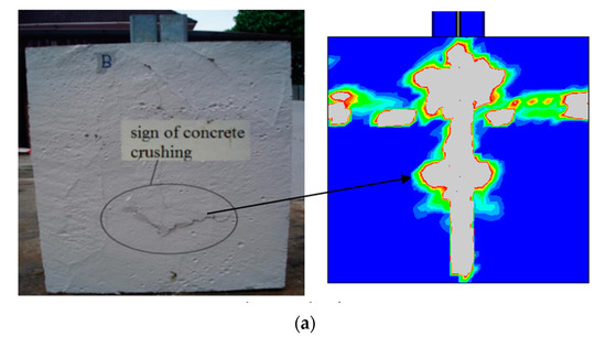 - A basic Rankine criterion was used to detect crack initiation for crack detection [28]. It was also assumed that cracking occurs when the tensile equivalent plastic strain exceeds zero and the maximum principal plastic strain also exceeds zero [29].
