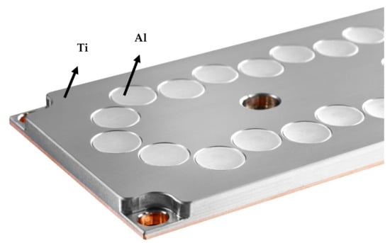 The process for the preparation of our studied composite coating on the milling drill source targets that were used in the creation of the studied TiAlN coatings. These are plates in which bright colored aluminum rollers were pressed. In the coating process, the source target (Figure 3) was bombarded with argon and krypton atoms. The released Ti + Al particles, together with the supplied nitrogen gas, form a TiAlN coating on the surface of the milling drill. By changing the amount of Al rollers in the titanium plate, we were able to influence the resulting chemical composition of the coating, namely the ratio between titanium and aluminum.