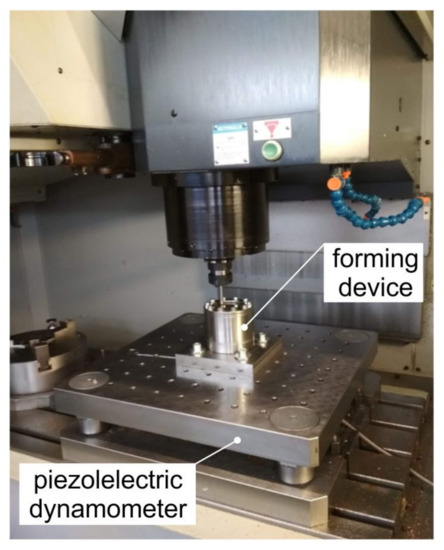 The axial (z-axis) and horizontal (x- and y-axes) forces occurring during the SPIF process were measured by a high-accuracy piezoelectric dynamometer (Kistler). It consisted of 4 force sensors calibrated in the range from 0 to 10 kN in the horizontal plane and from 0 to 60 kN in the vertical direction. The force values were acquired with a maximum sample rate per channel of 200 kHz. Based on the two horizontal components of forming force Fx and Fy, the in-plane force Fxy was determined according to the following formula: