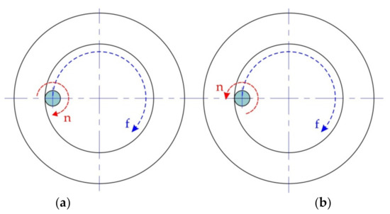 Schematic diagram of spindle rotation: (a) clockwise; and (b) anticlockwise.