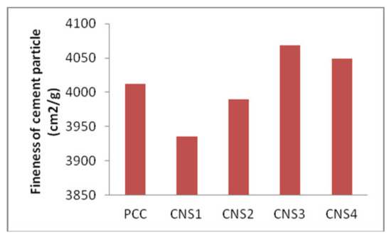 The quantity of Napa soil used in producing composite cement is proportional to its grinding time until it reaches 3800–4200 cm2/g. In Figure 4, CNS4 gives a good result as it requires only a short setting time and high compressive strength, probably due to its fine cement particles [13].