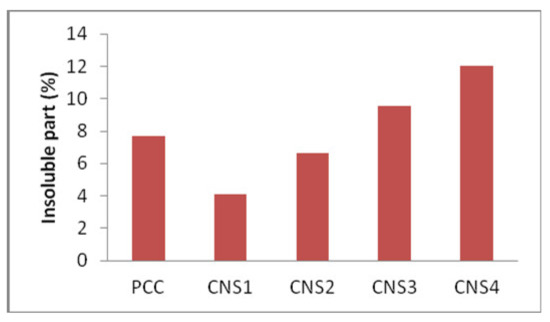% insoluble part = (mass of precipitate/mass of sample) × 100%