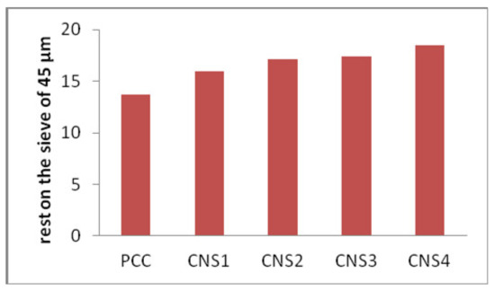 3.5. Analysis of the Rest on Sieve of 45 µm