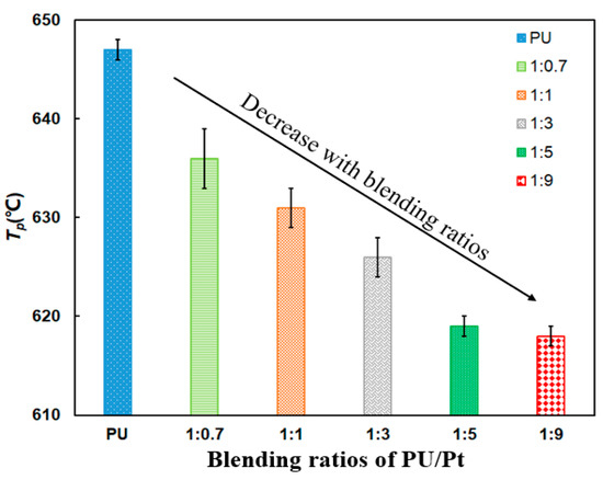 Comparison of Tp of PU/Pt mixtures at different blending ratios.