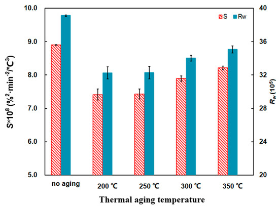 Comparison of the S and Rw indices of at different thermal aging temperatures.