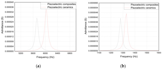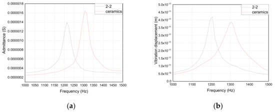 Figure 6a demonstrates that the 2-2 piezoelectric composite vibrator has a lower resonant frequency than the piezoelectric ceramic vibrator.