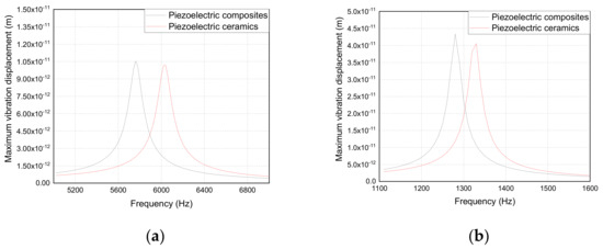 Figure 7a demonstrates that the 2-2 piezoelectric composite vibrator has a larger vibration displacement than the piezoelectric ceramic vibrator.