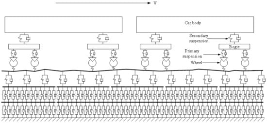 In reality, the car body is not rigid; however, due to the excellent vibration-reduction capacity of the primary and secondary suspension systems, the car body is widely modeled as rigid body in the study of train/vehicle–ballastless track–subgrade coupled dynamics due to its acceptable calculation accuracy and simplicity.