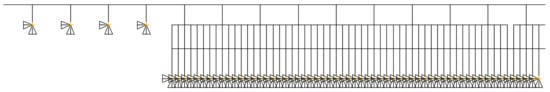 A static wheel load is applied to the central part and the left part in the sub-model, respectively, to calibrate the stiffness of the track foundation in the left and right parts. The equivalent stiffness of the track foundation is determined according to the relative error between the maximum vertical rail displacements of the central part and those of the side part and is less than 10−6. Detailed procedures can be found in Reference [].
