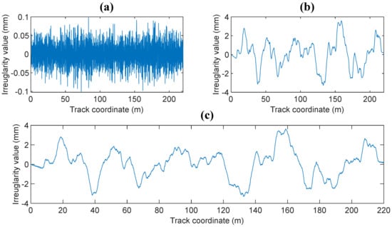 Samples of the: (a) short wavelength; (b) middle long wavelength; (c) combined random track irregularity.